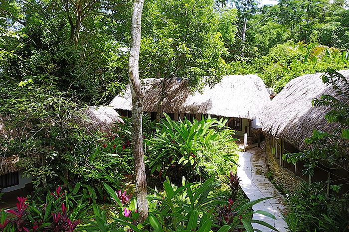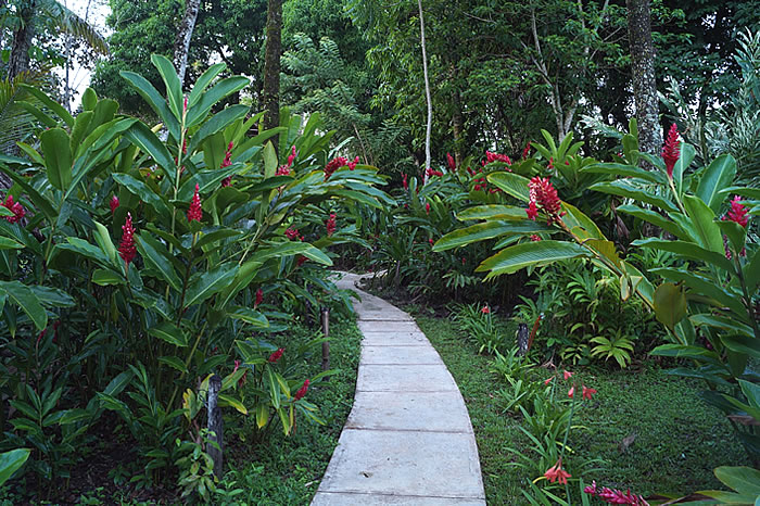 Rodeado de jardines tropicales en el borde del parque Nacional de Palenque
