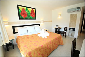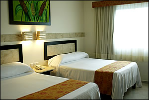 con 48 habitaciones, equipadas con dos camas matrimoniales, aire acondicionado,