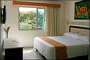 una cama King-size, aire acondicionado, LCD 32” con cable visión,